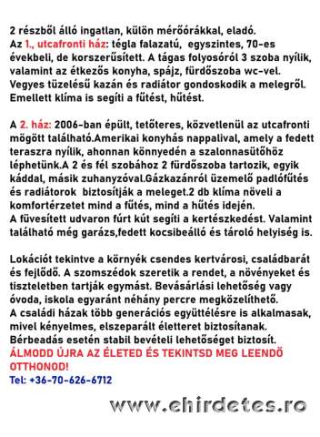 2 épületből álló családiház, külön mérőórákkal eladó. Összes alapterület 190 nm.